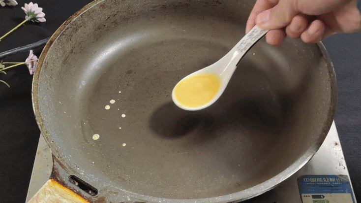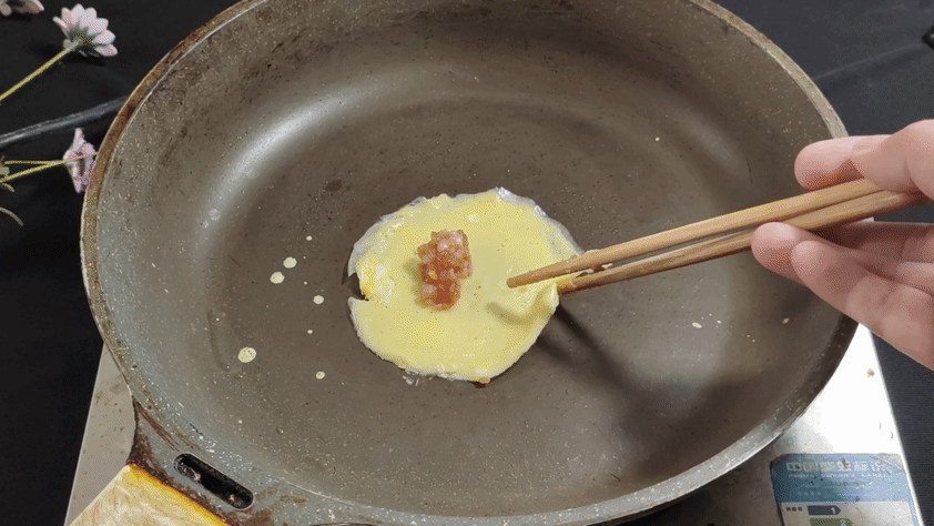 Bước 4: Bạn đặt chảo chống dính lên trên bếp (tốt nhất nên sử dụng bếp từ để đảm bảo căn chỉnh được mức nhiệt hợp lý), đun nóng trên lửa lớn. Sau đó vặn nhỏ lửa lại rồi dùng thìa múc một ít nước trứng rồi cho vào chảo. Dùng thìa xoay và phết trứng thành hình tròn. Sau khi lớp trứng đông đặc, bạn lấy một ít nhân thịt đặt vào giữa, gập đôi lớp vỏ trứng lại. Tiếp đó dùng đũa kẹp lại để tạo thành hình hoành thánh vỏ trứng. Thực hiện bước này cho đến khi hoàn thành hết các nguyên liệu làm hoành thánh vỏ trứng.