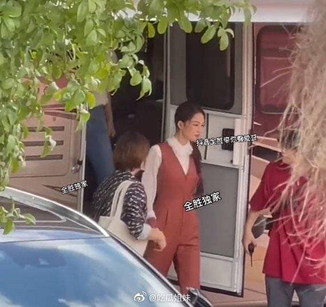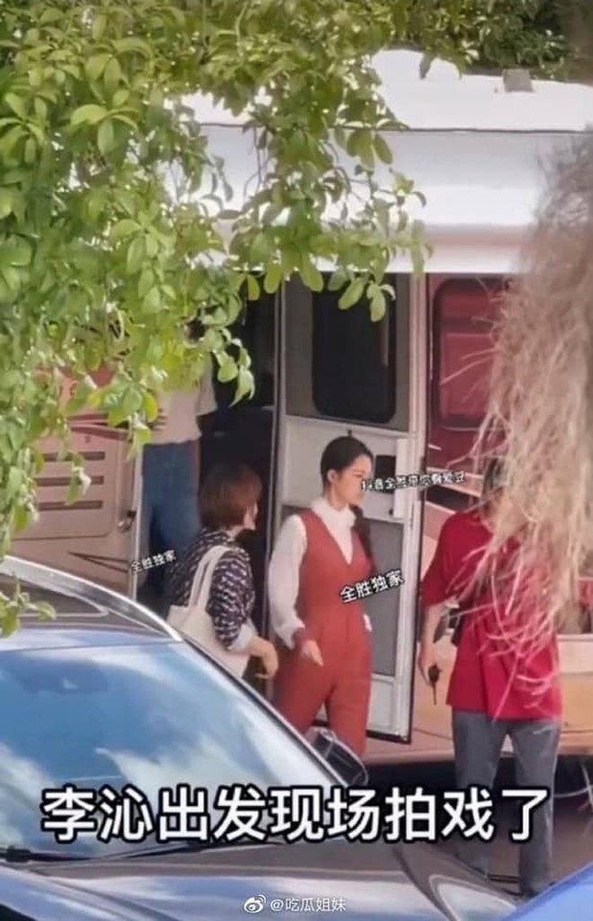 Về phía Lý Thấm, trang phục của nữ diễn viên là một bộ jumpsuit màu cam đất phối với sơ mi trắng. Kiểu tóc tết lệch một bên khiến Lý Thấm trở nên rất đỗi dịu dàng.