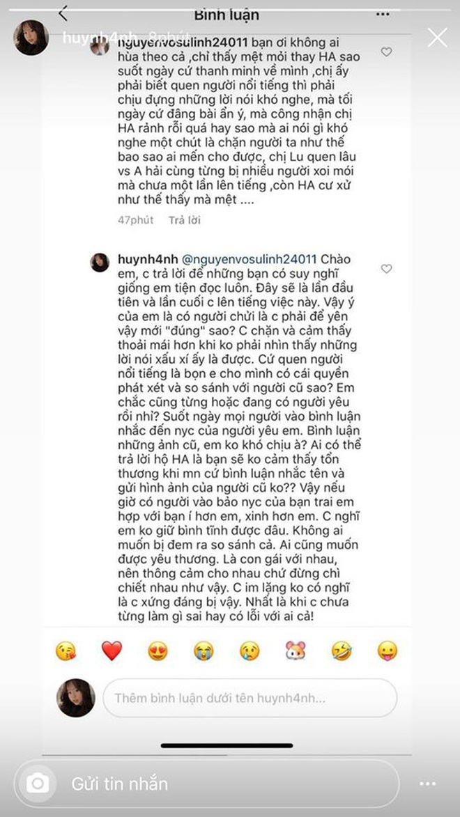 Một vài story đáp trả "sương sương" của Huỳnh Anh với antifan