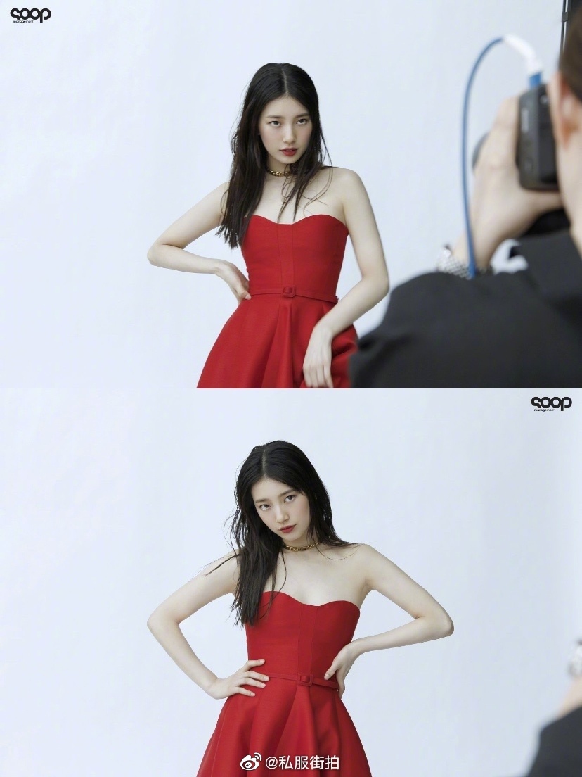 Tuy nhiên bộ váy màu đỏ của Dior mà "bản sao Lưu Diệc Phi" diện lại vô tình "đụng hàng" với Suzy. Người đẹp sinh năm 1994 từng mặc bộ váy này khi xuất hiện trên tạp chí Vogue Hàn số ra tháng 6 vừa rồi.