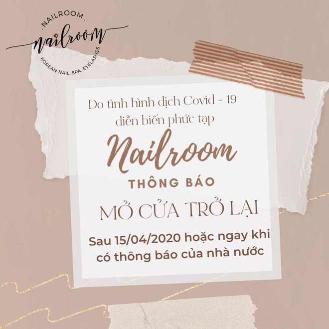 "Sau khi có lệnh tạm đóng cửa, có rất nhiều khách của Nail Room yêu cầu thợ qua nhà làm nhưng vì nail và mi là nghề phải tiếp xúc trực tiếp và ngồi gần khách nên bên mình không thể mạo hiểm sức khoẻ của chính khách hàng và nhân viên để đổi lấy doanh thu được. Trước mắt Nail Room sẽ triển khai bán online các sản phẩm để khách có thể vệ sinh và làm móng đơn giản tại nhà, cũng như các sản phẩm dưỡng móng, da để khách tự chăm sóc đến khi hết dịch.