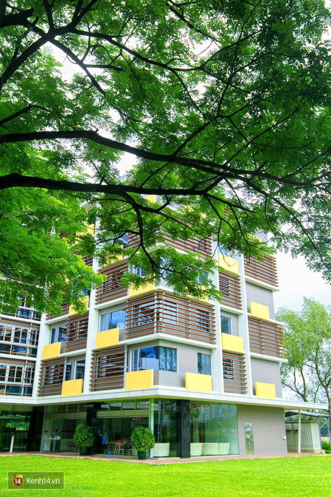 Trường tách biệt 2 tòa nhà học tập, hành chính với khu phức hợp, giải trí để tạo cảm giác thoải mái cho sinh viên. Khuôn viên khá rộng nhưng việc đi bộ không khiến bạn cảm thấy phiền lòng mà ngược lại sẽ tạo sự dễ chịu bởi hàng cây xanh rì và mát mẻ. Với tòa nhà Academic 1 có kiến trúc đương đại và tòa Academic 2 được xây dựng hiện đại hơn, tạo nên tổng thể khá đặc biệt cho toàn bộ công trình.