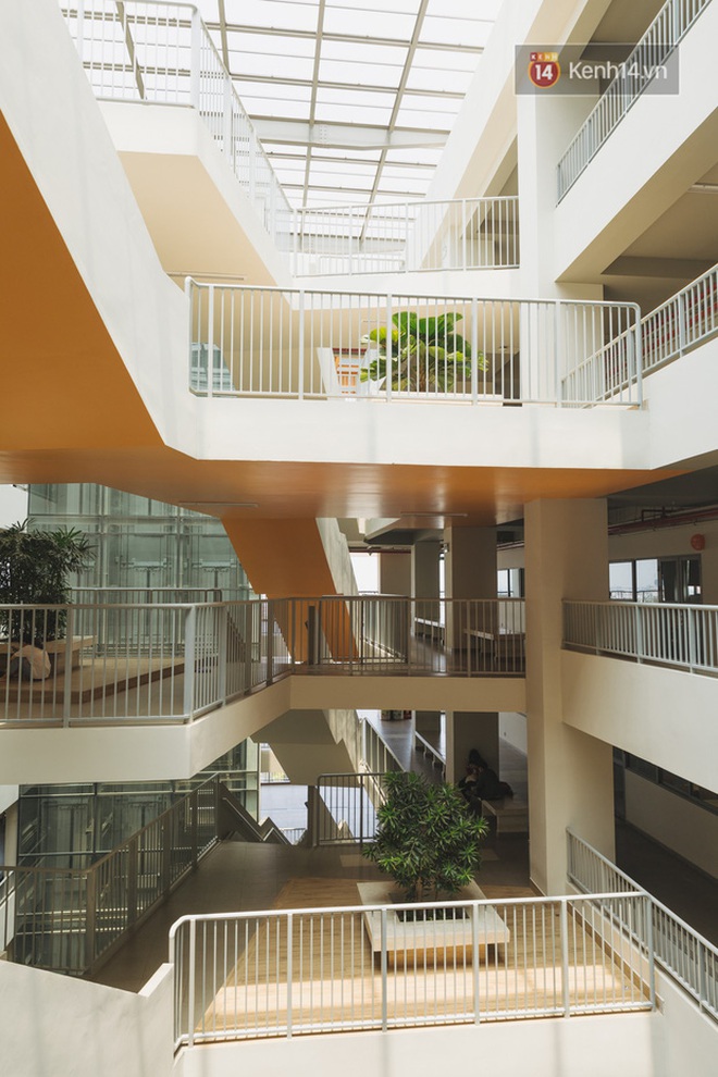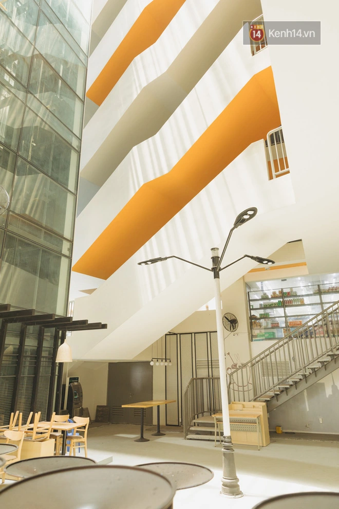 Thang máy trong suốt là điểm nổi bật mà bất kỳ sinh viên nào cũng thích thú khi di chuyển vì có thể ngắm nhìn được toàn bộ tòa nhà, thư viện hay các phòng ban tại tòa nhà L-V cũng được xây dựng đúng chuẩn châu Âu, tạo cảm giác như đang lạc giữa trời Tây. Ngoài ra loạt công trình tiện ích phục vụ cho nhu cầu sinh viên cũng đã được xây dựng như canteen, quán coffee,... để biến không gian của đại học Văn Lang thực sự là ngôi trường trong mơ của các bạn sinh viên. Thế nên, nếu đoàn làm phim Vườn sao băng có lựa chọn ngôi trường xịn xò này để quay hình thì cũng không có gì ngạc nhiên.