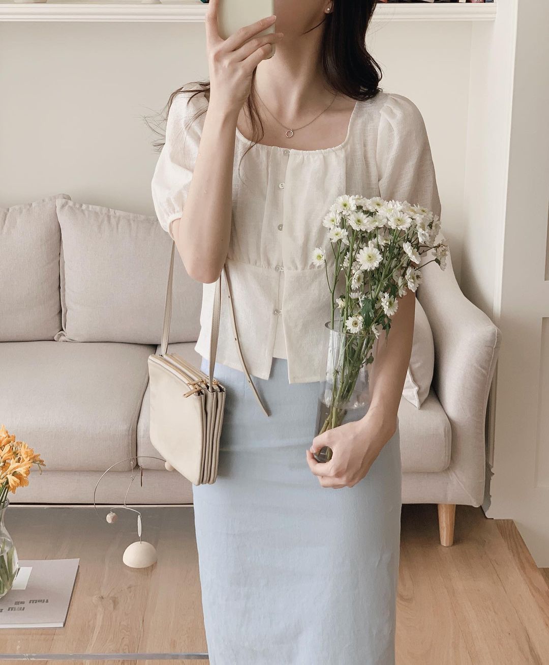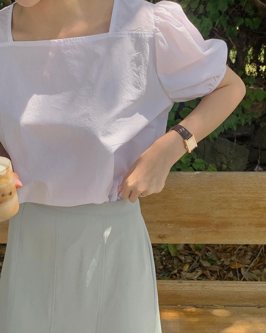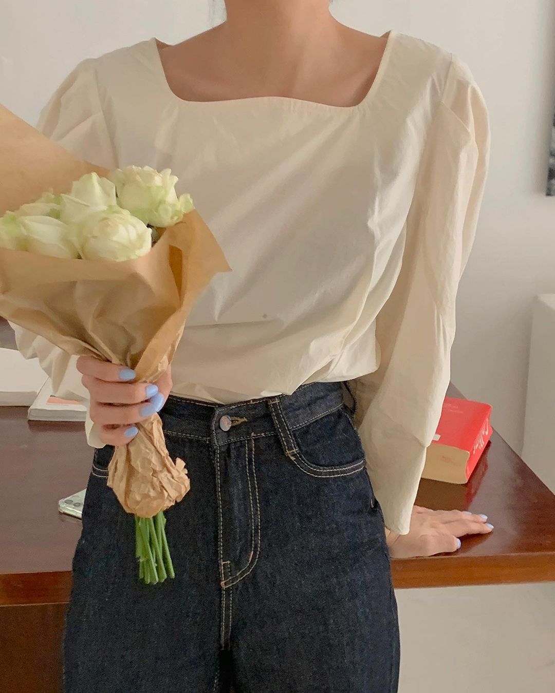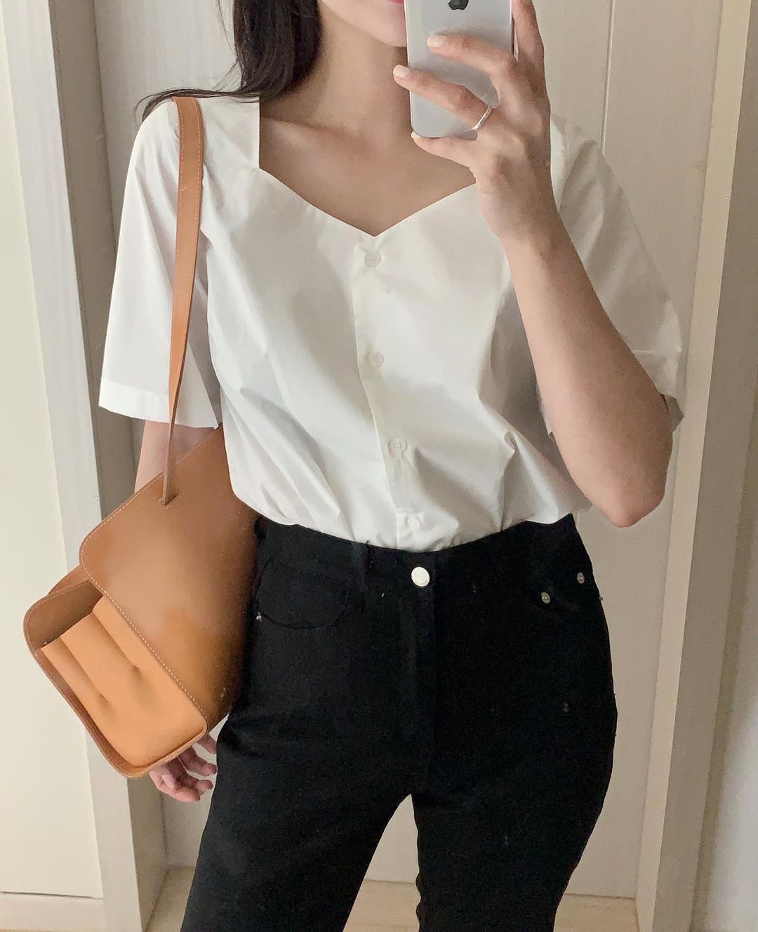 Áo blouse mang gam màu trắng sẽ đem đến sự nhẹ nhõm về cả phần nhìn lẫn cảm giác. Tuy nhiên thay vì diện những mẫu áo blouse cổ tròn, áo blouse cổ vuông thoáng đãng sẽ giúp giải nhiệt hiệu quả hơn. Quan trọng là, áo blouse cổ vuông vẫn đảm bảo cho bạn vẻ ngoài thanh lịch, lại giúp set trang phục có được nét cổ điển, sang chảnh cực kỳ hút mắt. Áo blouse trắng cổ vuông rất hợp mix với những món đồ như là quần âu màu pastel, quần âu trắng, quần jeans ống rộng hay chân váy để cho bạn outfit mát mẻ, đẹp xinh.