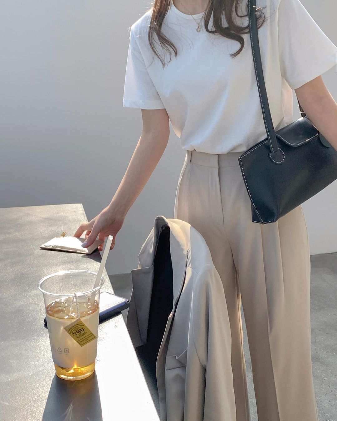 Với những môi trường công sở đủ thoải mái, áo thun trắng là item hoàn toàn có thể diện để đi làm. Áo thun trắng chất liệu vải cotton sẽ giúp thấm hút mồ hôi tốt, cho bạn cảm giác nhẹ nhàng, dễ chịu trong những ngày hè nóng nực. Áo thun trắng mix với quần âu hoặc chân váy, sau đó sơ vin gọn gàng sẽ cho bạn một outfit chỉn chu và tươi trẻ, sành điệu, bạn rất nên lưu tâm những công thức này để áp dụng khi thời tiết đang ngày càng oi nóng.