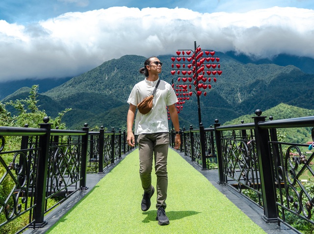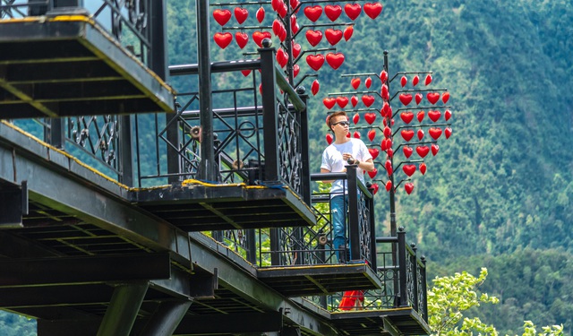 Quán nằm ở nơi lộng gió nên dù đứng ở bất cứ đâu, ngoài trời hay trong nhà, bạn đều có thể tận hưởng gió lộng và mát. Chiếc cầu lớn được thiết kế đẹp, treo nhiều trái tim, phù hợp với các cặp đôi lên chụp ảnh. Quán còn bán cả móc quá tình yêu để treo trên cầu.