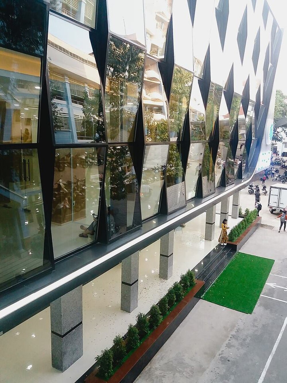 Không gian được thiết kế hiện đại với cửa kính thông thoáng.