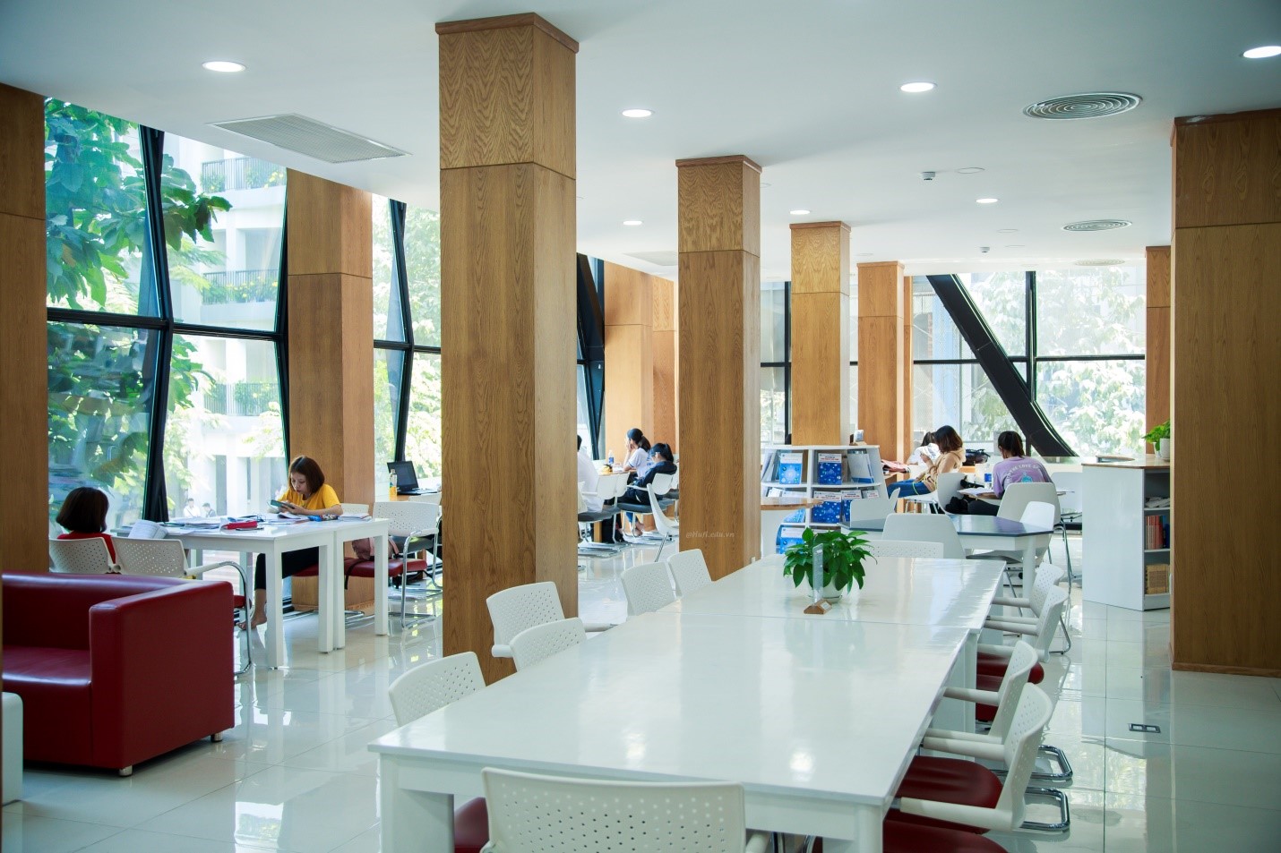 Thật vậy, "lạc" vào thư viện HUFI, nhiều người sẽ không biết nên gọi đây là... thư viện hay sảnh khách sạn 5 sao.