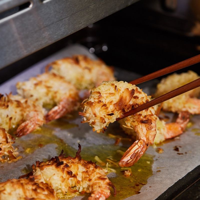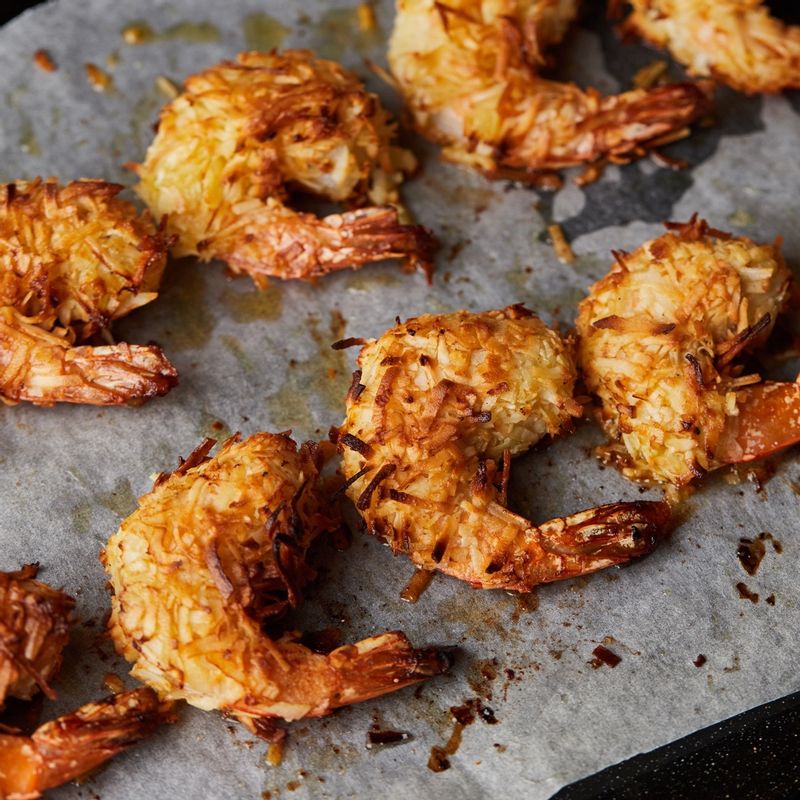 Tôm bọc dừa rồi chiên giòn là món ăn ngon, với các thao tác chế biến đơn giản, dễ làm. Món ăn này dùng nồi chiên không dầu để làm chín nên sẽ giúp tôm dừa giòn dễ dàng mà không cần sử dụng quá nhiều dầu ăn. Tôm dừa chiên giòn có thành phẩm vàng ruộm, bắt mắt và mùi thơm hấp dẫn. Khi cắn một miếng bạn sẽ cảm nhận được vị giòn bùi từ dừa, vị ngọt căng mọng thấm gia vị đậm đà từ thịt tôm. Với món tôm chiên dừa bạn có thể ăn kèm cùng với rau xà lách. Đây cũng là một món ăn rất được lòng các trẻ nhỏ.
