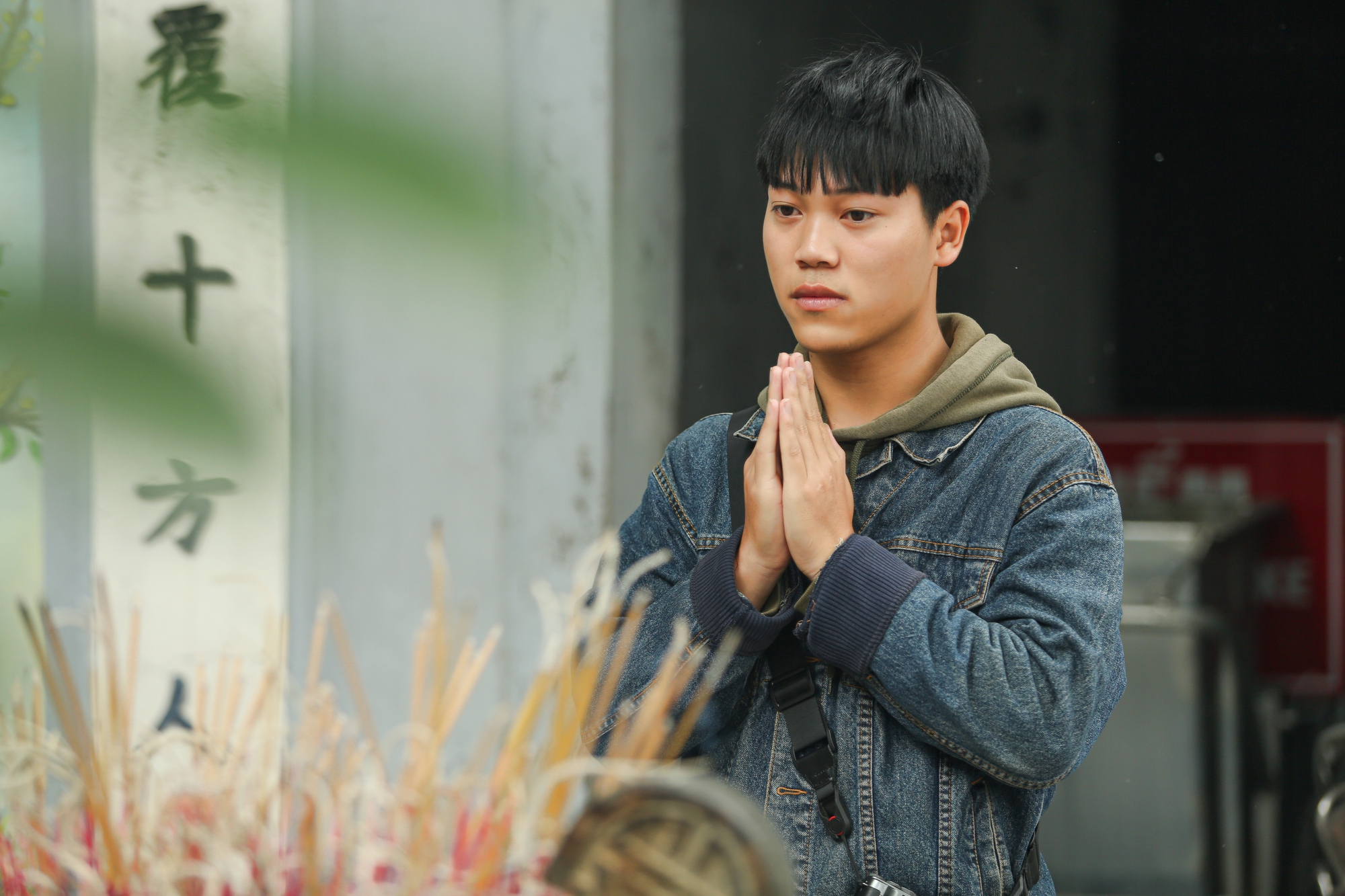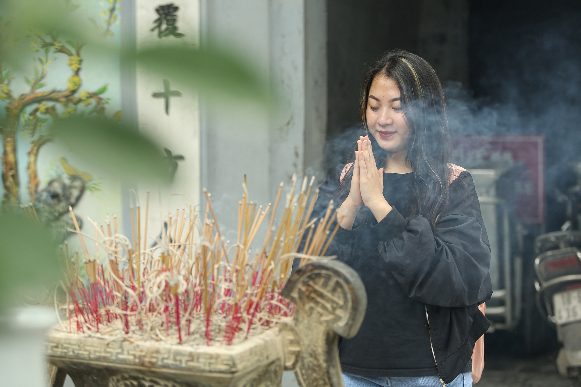 Các bạn trẻ với nén hương kính cẩn, thành tâm cầu nguyện mong tìm được một nửa phù hợp với mình.
