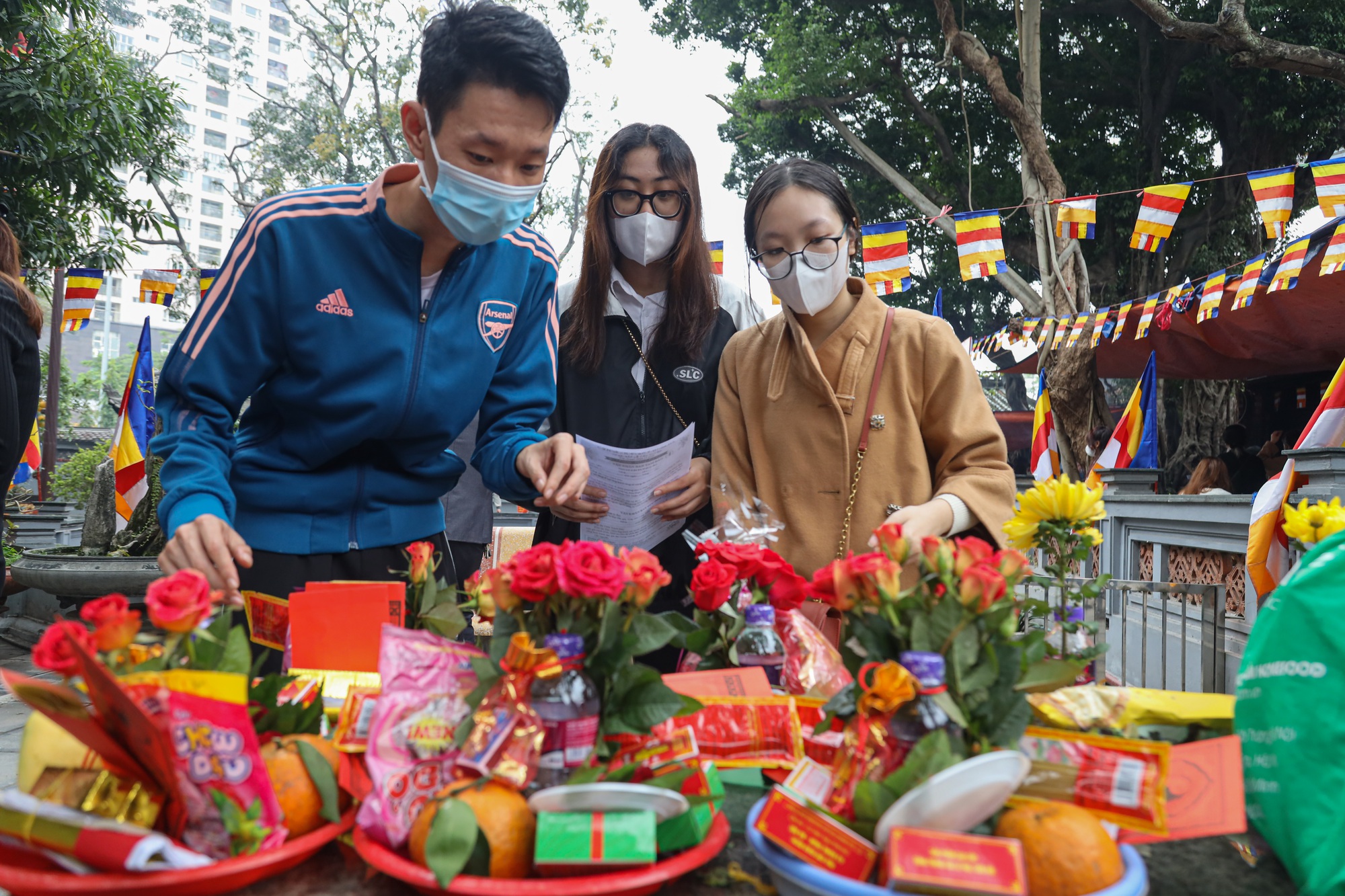 Rất đông người dân đến hành lễ, đa phần là giới trẻ. Mỗi người đều mong ước chuyện tình cảm được suôn sẻ.