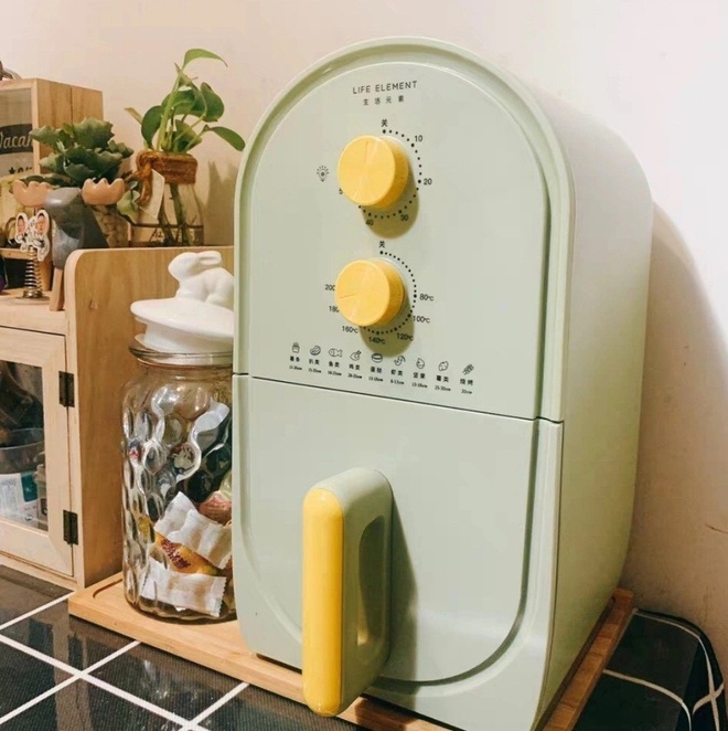 Nhà chật, ít người thì khuyên thật bạn thử tăm tia em nồi chiên không dầu mini Life Element này đi. Có dung tích chỉ vỏn vẹn 2L nên em này siêu nhỏ gọn luôn, nhưng công suất thì khá ổn đấy nhé, lên tới 1400W cơ đấy. “Ẻm” có 2 lựa chọn màu sắc là xanh nõn và xanh cổ vịt - 2 tông màu cực trẻ, cực “trend” đảm bảo bạn nhìn là mê ngay.